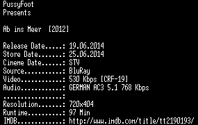 | FiLENAME: | Ab.ins.Meer.2012.German.BDRiP.x264-PussyFoot.mkv |