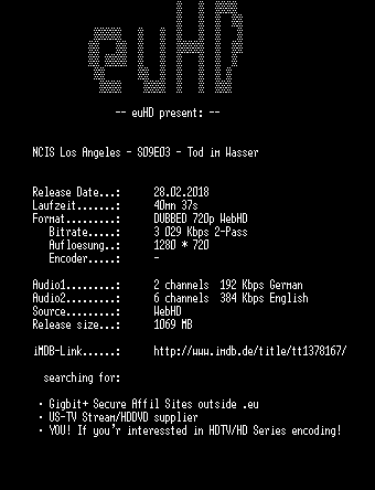 | FiLENAME: | NCIS.Los.Angeles.S09E03.Tod.im.Wasser.GERMAN.DUBBED.DL.720p.WebHD.h264-euHD.mkv |