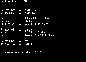 | FiLENAME: | Dead.Man.Down.German.BDRiP.x264-EXQUiSiTE.mkv |