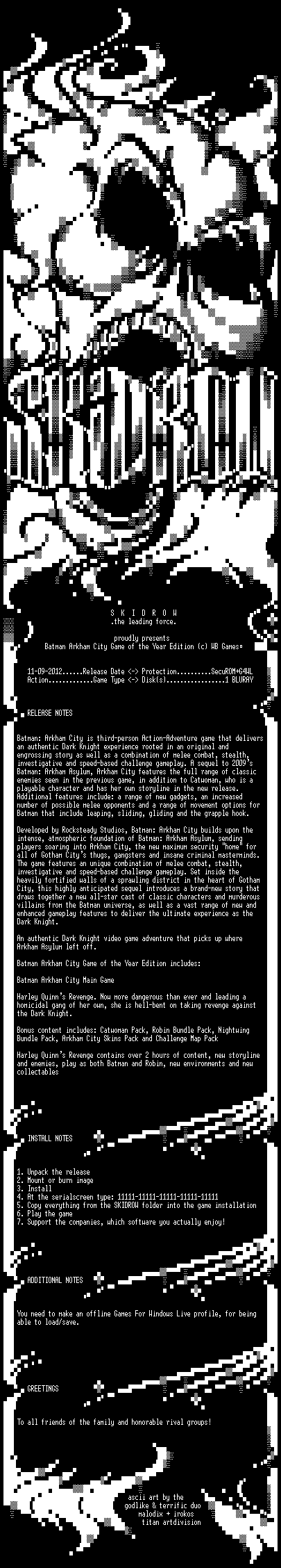 | FiLENAME: | Batman.Arkham.City.Game.of.the.Year.Edition-SKIDROW.iso |