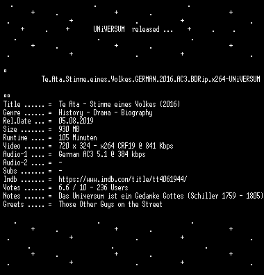 | FiLENAME: | Te.Ata.Stimme.eines.Volkes.GERMAN.2016.AC3.BDRip.x264-UNiVERSUM.mkv |