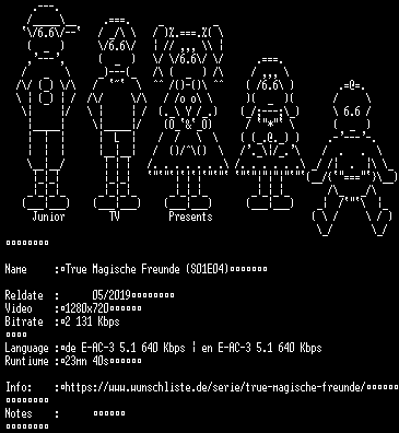 | FiLENAME: | True.Magische.Freunde.S01E04.German.DL.720p.WEBHD.x264-JuniorTV.mkv |