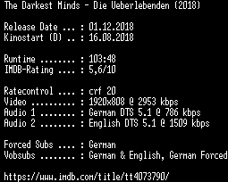| FiLENAME: | The.Darkest.Minds.Die.Ueberlebenden.2018.German.DTS.DL.1080p.BluRay.x264-COiNCiDENCE.mkv |