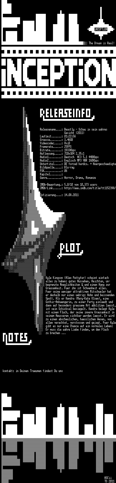 | FiLENAME: | Beastly.-.Schau.in.sein.wahres.Gesicht.2011.German.AC3.DL.BDRip.XviD-iNCEPTiON.avi |