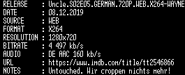 | FiLENAME: | Uncle.S02E05.GERMAN.720P.WEB.X264-WAYNE.mkv |
