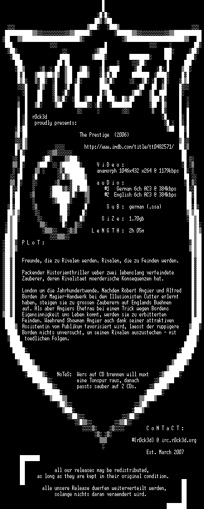 | FiLENAME: | The Prestige (2006) [DL-AC3 WS DVD].mkv |