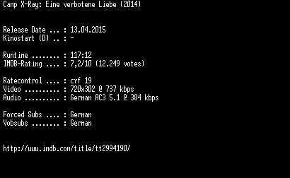 | FiLENAME: | Camp.X-Ray.Eine.verbotene.Liebe.German.2014.BDRiP.x264-EXQUiSiTE.mkv |