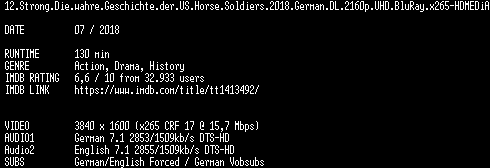 | FiLENAME: | 12.Strong.Die.wahre.Geschichte.der.US.Horse.Soldiers.2018.German.DL.2160p.UHD.BluRay.x265-HDMEDiA.mkv |