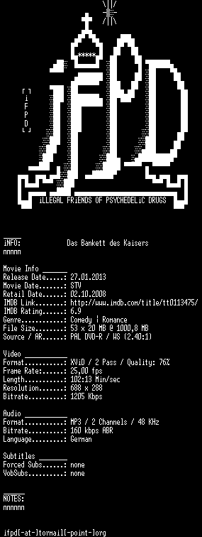 | FiLENAME: | Das.Bankett.des.Kaisers.1995.German.DVDRiP.XViD-iFPD.avi |