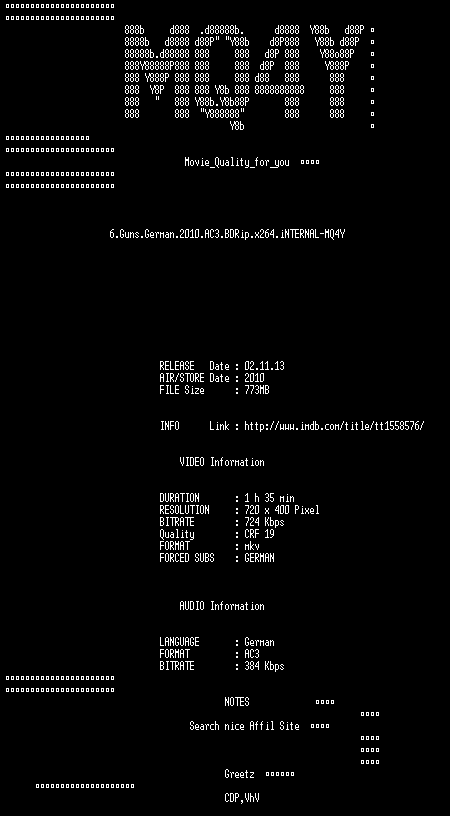 | FiLENAME: | 6.Guns.German.2010.AC3.BDRip.x264.iNTERNAL-MQ4Y.mkv |