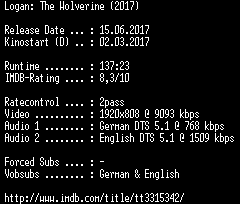 | FiLENAME: | Logan.The.Wolverine.2017.German.DTS.DL.1080p.BluRay.x264-COiNCiDENCE.mkv |
