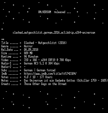 | FiLENAME: | Slashed.Aufgeschlitzt.GERMAN.2016.AC3.BDRip.x264-UNiVERSUM.mkv |