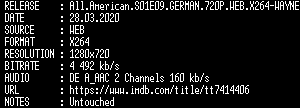 | FiLENAME: | All.American.S01E09.GERMAN.720P.WEB.X264-WAYNE.mkv |