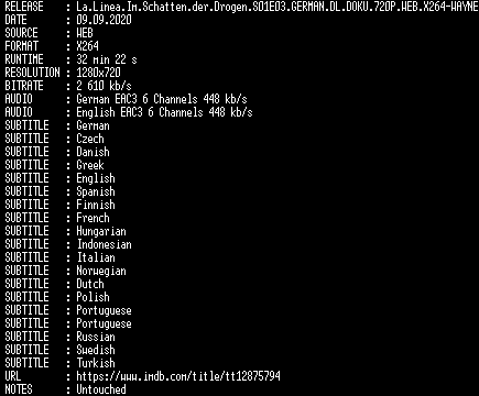 | FiLENAME: | La.Linea.Im.Schatten.der.Drogen.S01E03.GERMAN.DL.DOKU.720P.WEB.X264-WAYNE.mkv |