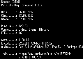 | FiLENAME: | Boston.German.2016.DL.BDRiP.x264-CiNEViSiON.mkv |