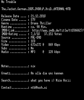 | FiLENAME: | The Jacket (2005) [GER WS DVD].avi |