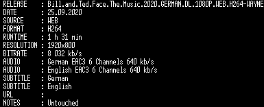 | FiLENAME: | Bill.and.Ted.Face.The.Music.2020.GERMAN.DL.1080P.WEB.H264-WAYNE.mkv |