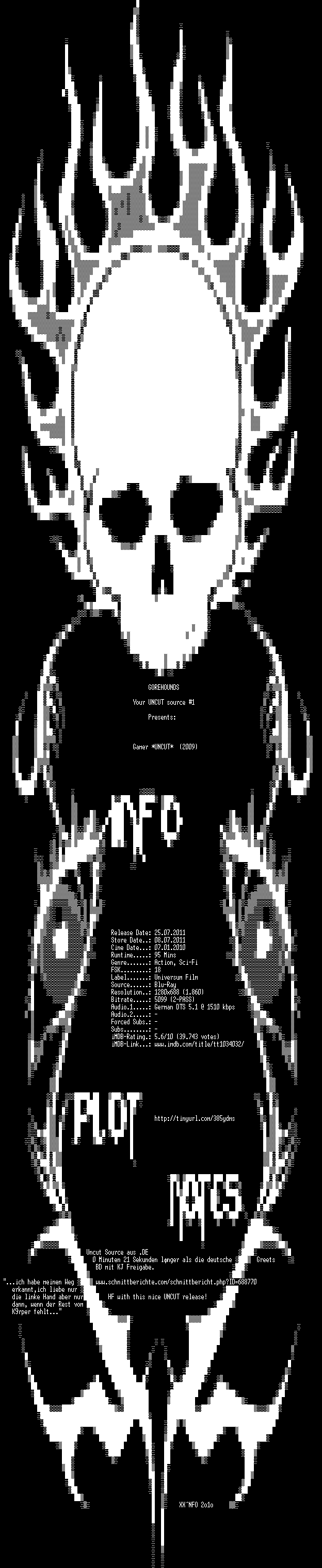 | FiLENAME: | Gamer.UNCUT.2009.German.DTS.720p.BluRay.x264-GOREHOUNDS.mkv |