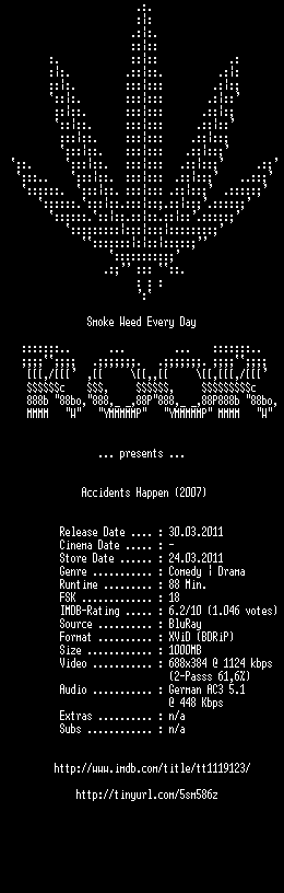 | FiLENAME: | Accidents.Happen.German.2009.AC3.BDRiP.XViD-ROOR.avi |