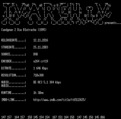 | FiLENAME: | Candyman.2.Die.Blutrache.1995.German.DVDRip.x264.iNTERNAL-TVARCHiV.mkv |