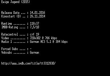 | FiLENAME: | Ewige.Jugend.German.2015.AC3.BDRiP.x264-EXQUiSiTE.mkv |