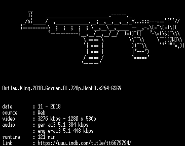 | FiLENAME: | Outlaw.King.2018.German.DL.720p.WebHD.x264-GSG9.mkv |