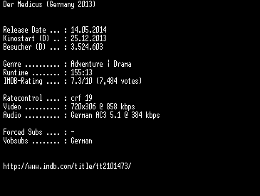| FiLENAME: | Der.Medicus.German.BDRiP.x264-EXQUiSiTE.mkv |