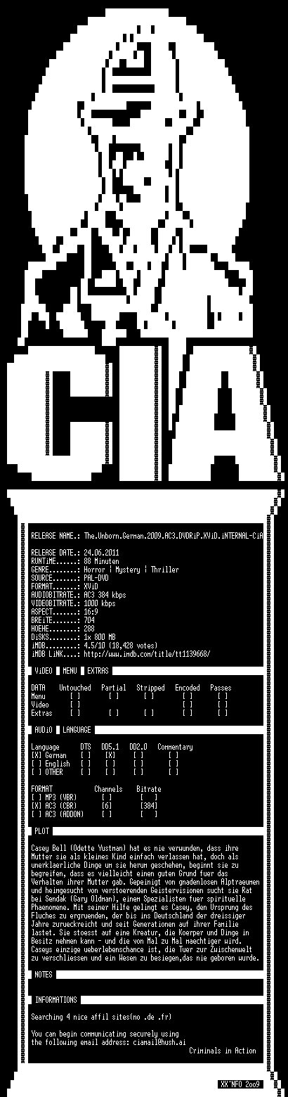| FiLENAME: | The.Unborn.German.2009.AC3.DVDRiP.XViD.iNTERNAL-CiA.avi |