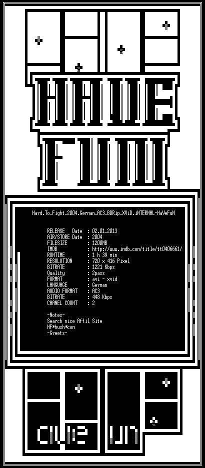 | FiLENAME: | Hard.To.Fight.2004.German.AC3.BDRip.XViD.iNTERNAL-HaVeFuN.avi |