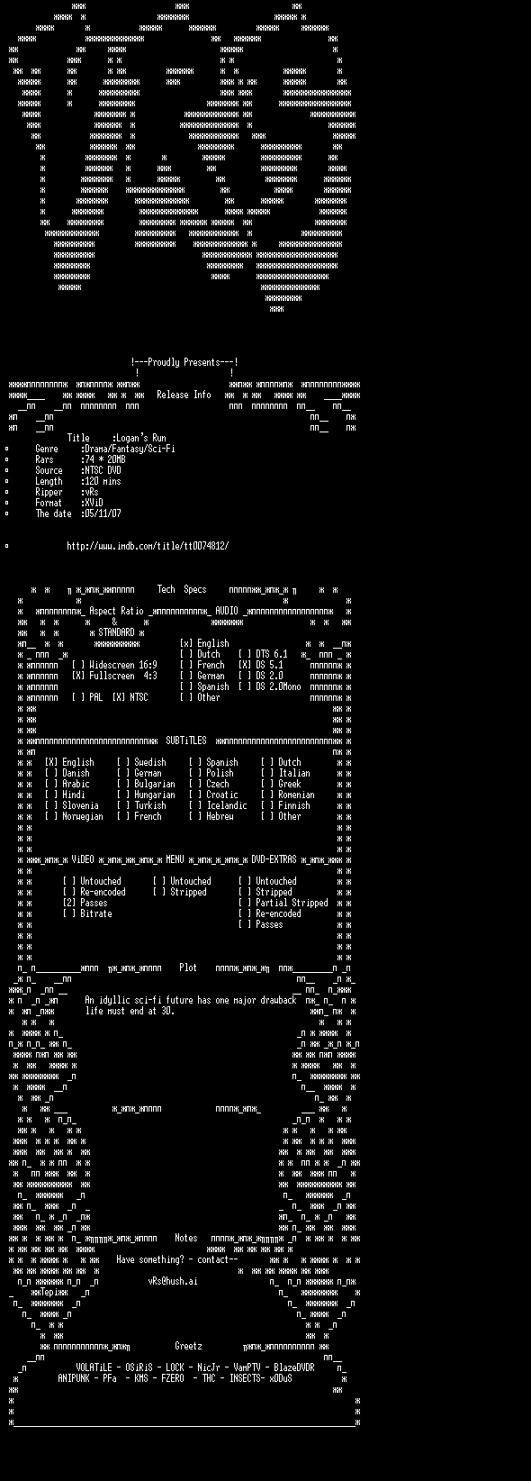 | FiLENAME: | Logans.Run.1976.iNT.DVDRip.XViD-vRs.CD2.avi |