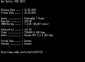 | FiLENAME: | Der.Butler.2013.German.BDRiP.x264-EXQUiSiTE.mkv |