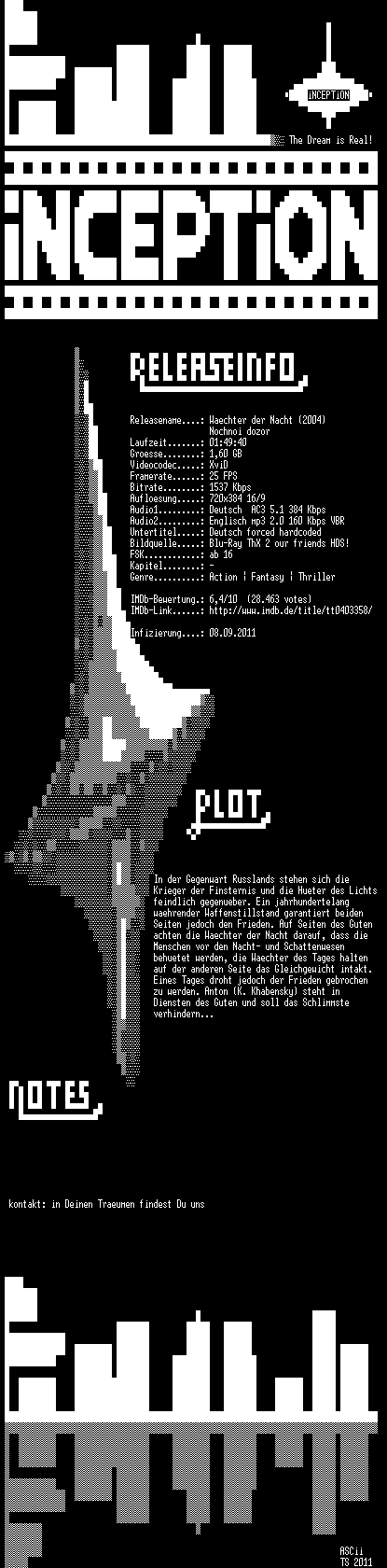 | FiLENAME: | Waechter.der.Nacht.2004.DC.German.AC3.DL.BDRip.XviD-iNCEPTiON.avi |
