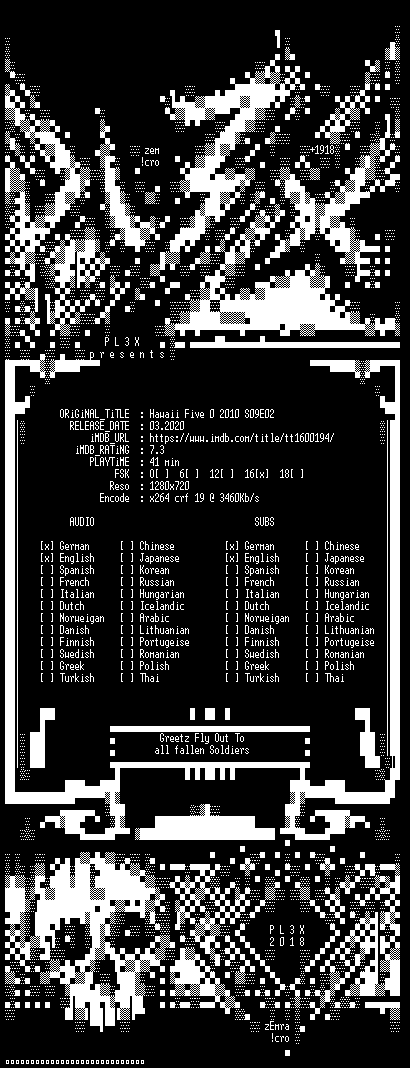 | FiLENAME: | Hawaii.Five-0.2010.S09E02.Der.Mann.der.vom.Himmel.fiel.GERMAN.DL.720p.BluRay.x264-PL3X.mkv |