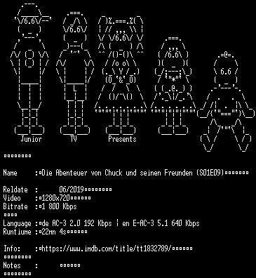| FiLENAME: | Die.Abenteuer.von.Chuck.und.seinen.Freunden.S01E09.German.720p.WEBHD.x264-JuniorTV.mkv |