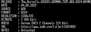 | FiLENAME: | The.Durrells.S03E03.GERMAN.720P.WEB.H264-WAYNE.mkv |