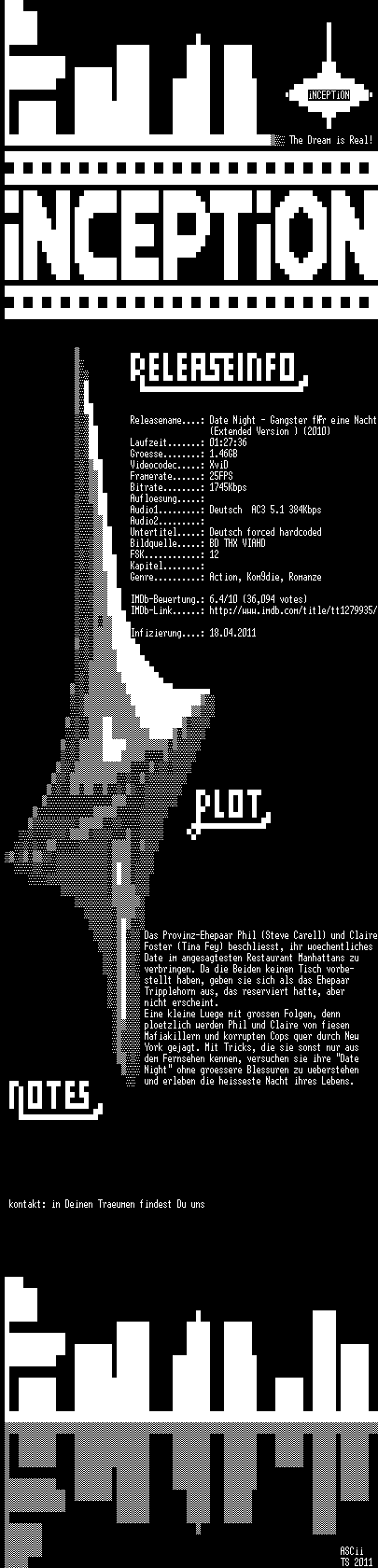 | FiLENAME: | Date.Night.Gangster.fuer.eine.Nacht.2010.Extended.Version.German.AC3.BDRip.XviD-iNCEPTiON.avi |