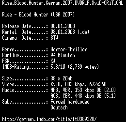 | FiLENAME: | Rise.Blood.Hunter.German.2007.DVDRiP.XviD-CRiTiCAL.avi |