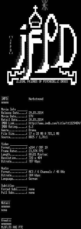 | FiLENAME: | Herbstmond.German.2010.AC3.BDRiP.x264-iFPD.mkv |