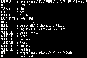 | FiLENAME: | Ueberredung.2022.GERMAN.DL.1080P.WEB.X264-WAYNE.mkv |