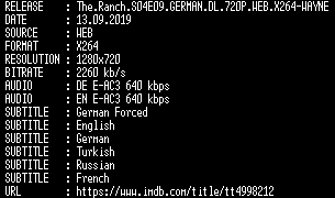 | FiLENAME: | The.Ranch.S04E09.GERMAN.DL.720P.WEB.X264-WAYNE.mkv |