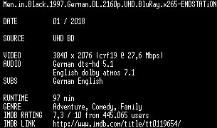 | FiLENAME: | Men.in.Black.1997.German.DL.2160p.UHD.BluRay.x265-ENDSTATiON.mkv |
