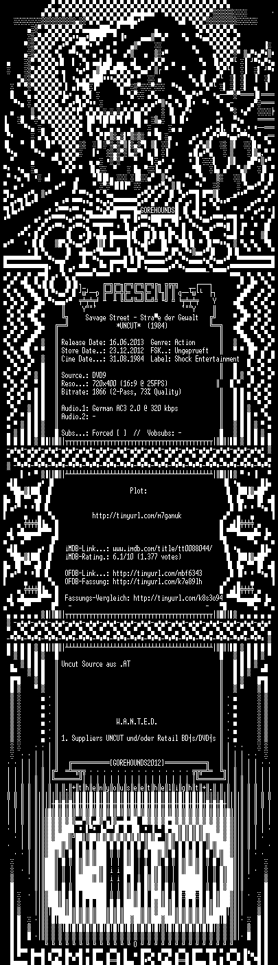 | FiLENAME: | Savage.Street.Strasse.Der.Gewalt.UNCUT.RETAIL.GERMAN.1984.AC3.DVDRiP.XViD-GOREHOUNDS.avi |