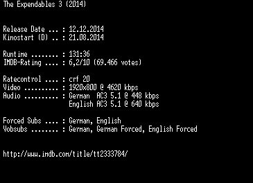 | FiLENAME: | The.Expendables.3.EXTENDED.German.DL.1080p.BluRay.x264-EXQUiSiTE.mkv |