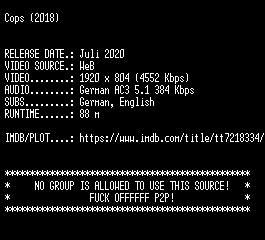 | FiLENAME: | Cops.2018.German.1080p.WEB.h264-SLG.mkv |