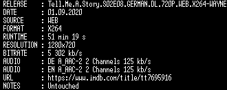 | FiLENAME: | Tell.Me.A.Story.S02E08.GERMAN.DL.720P.WEB.X264-WAYNE.mkv |