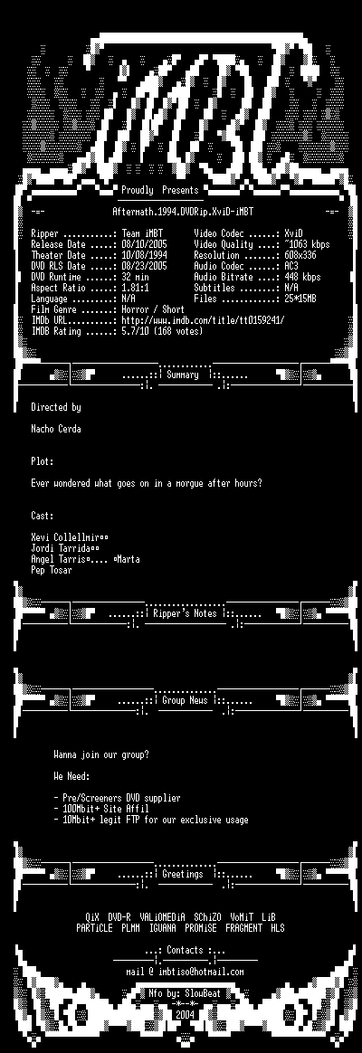 | FiLENAME: | Aftermath.1994.DVDRip.XviD-iMBT.avi |
