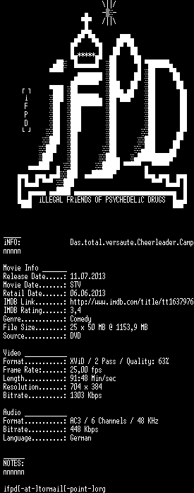 | FiLENAME: | Das.total.versaute.Cheerleader.Camp.2010.GERMAN.AC3.DVDRiP.XViD-iFPD.avi |
