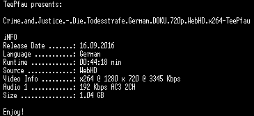 | FiLENAME: | Crime.and.Justice.-.Die.Todesstrafe.German.DOKU.720p.WebHD.x264-TeePfau.mkv |