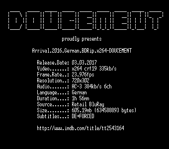 | FiLENAME: | Arrival.2016.German.BDRip.x264-DOUCEMENT.mkv |