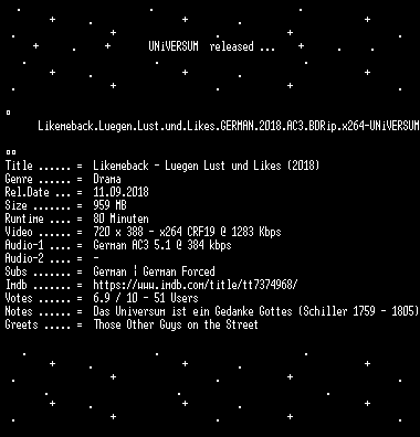 | FiLENAME: | Likemeback.Luegen.Lust.und.Likes.GERMAN.2018.AC3.BDRip.x264-UNiVERSUM.mkv |